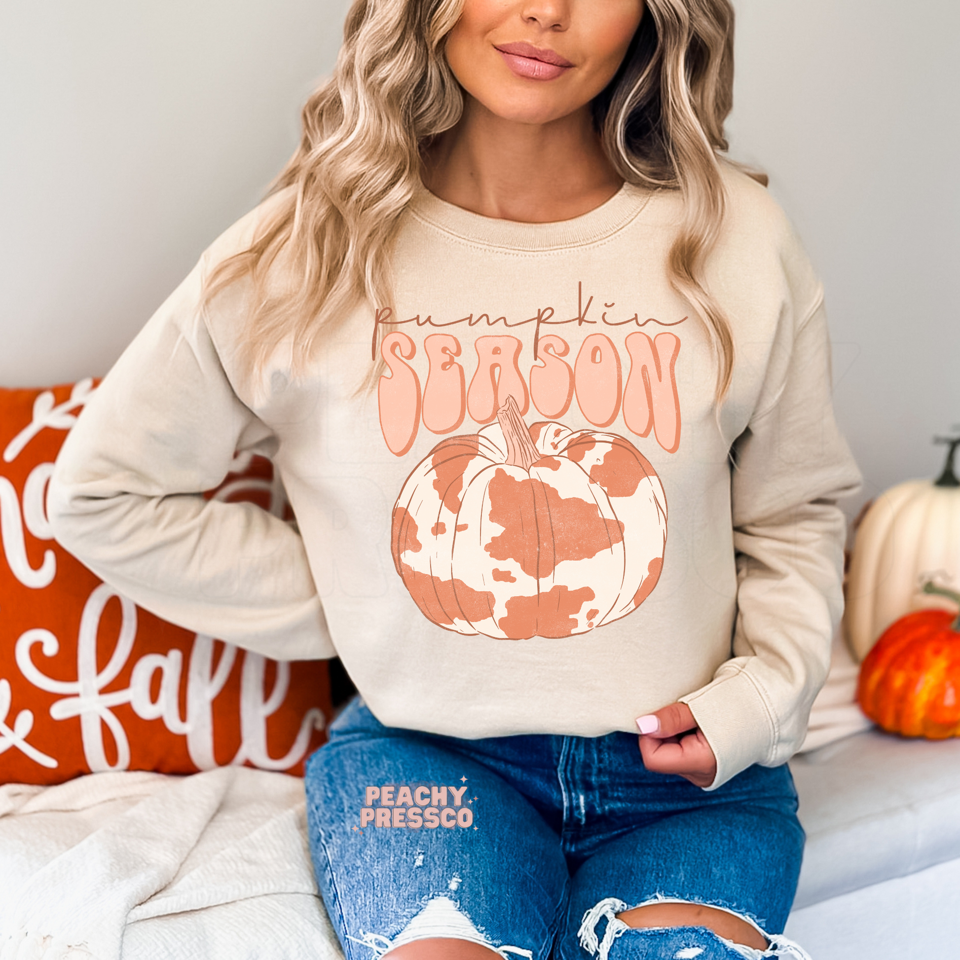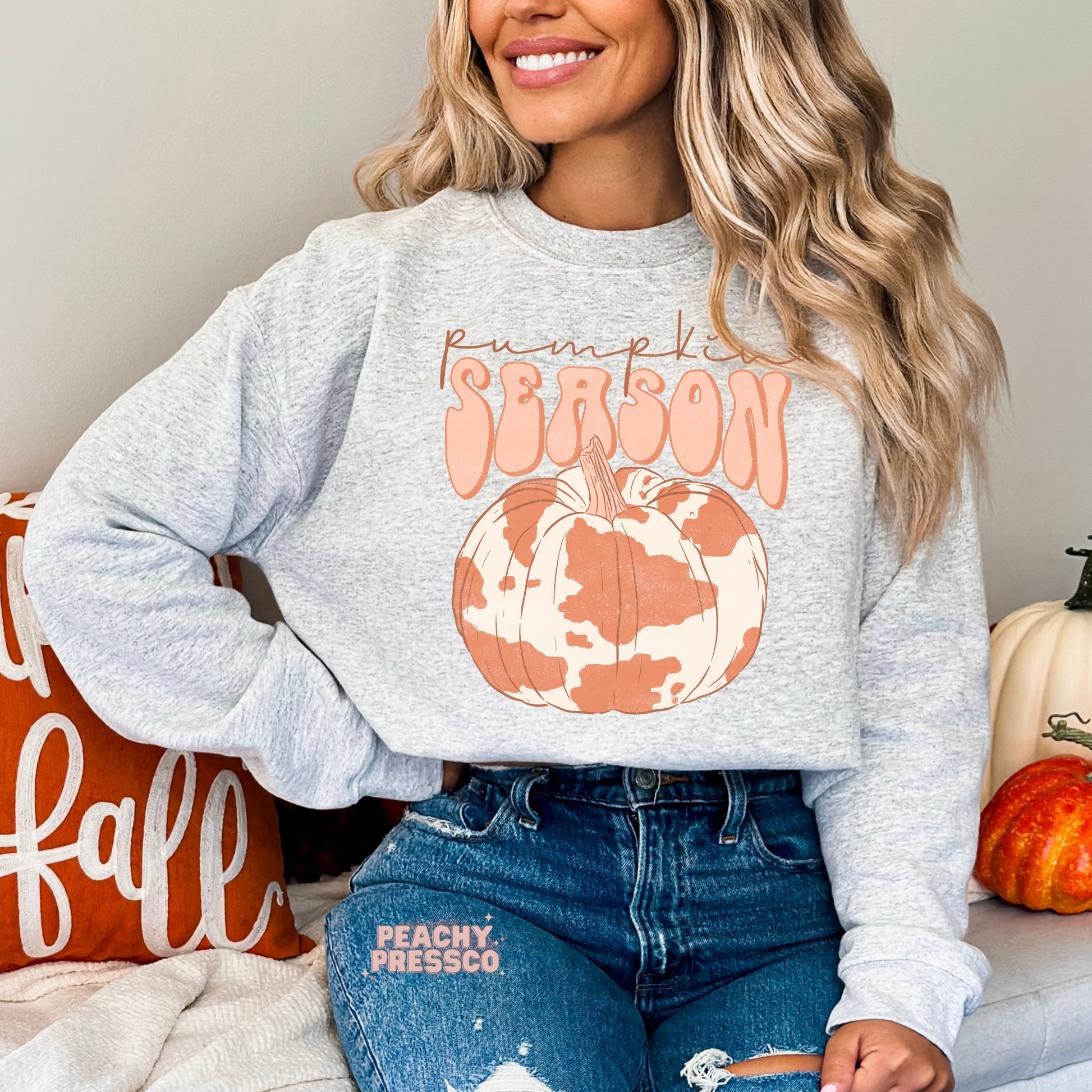 Pumpkin Season Cow Print Sweatshirt, Western Fall Apparel