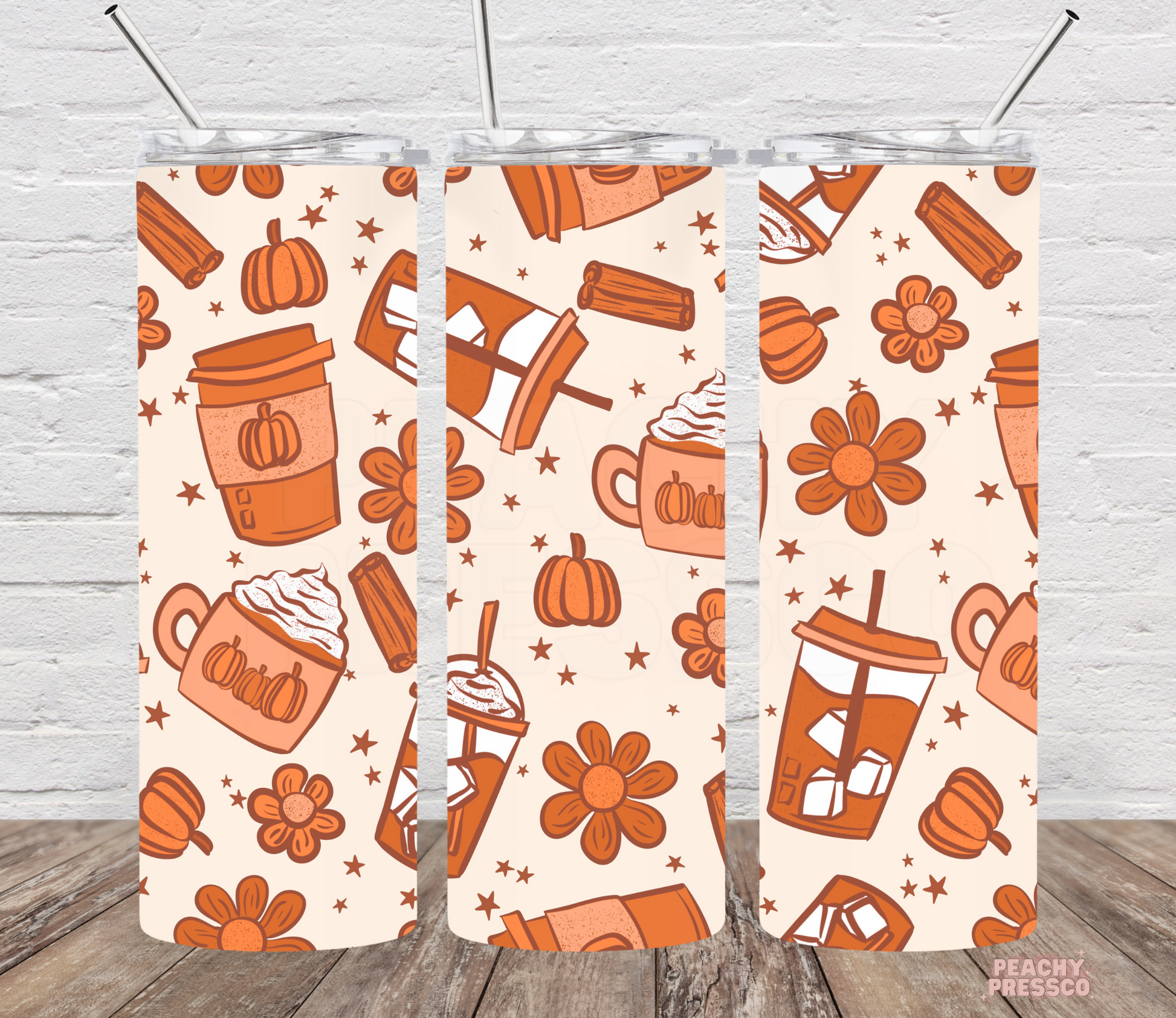 Pumpkin Spice Coffee Tumbler – Fall Drink, 20oz Skinny for PSL Lovers