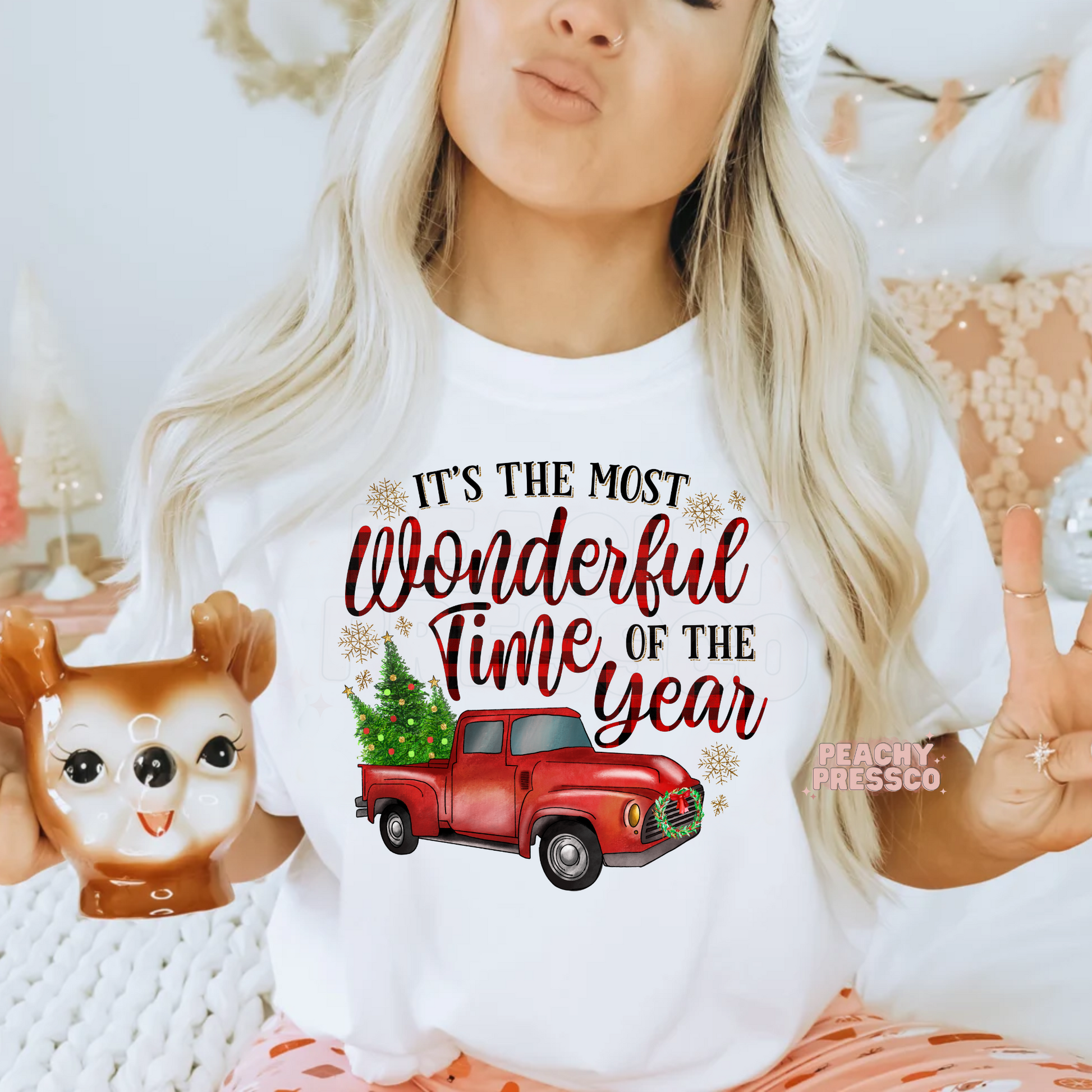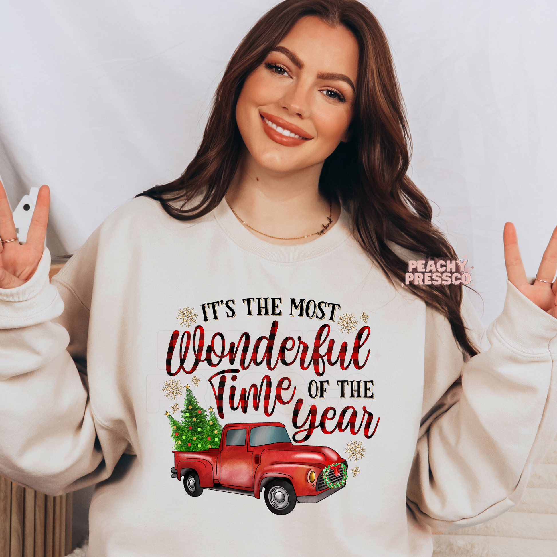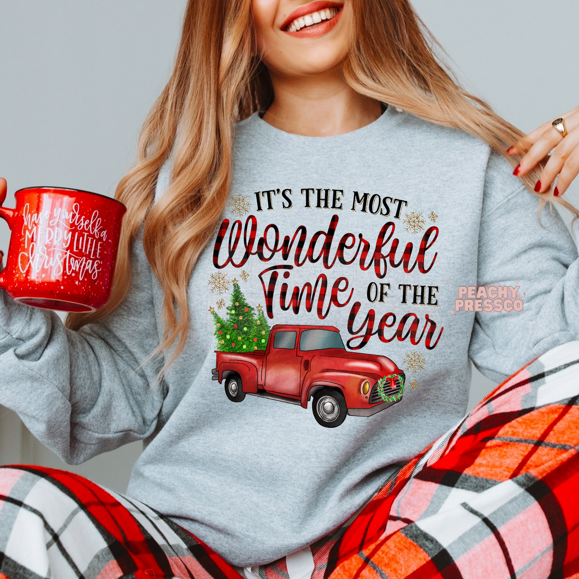 Red Truck Christmas Sweatshirt – Most Wonderful Time of the Year Holiday Pullover