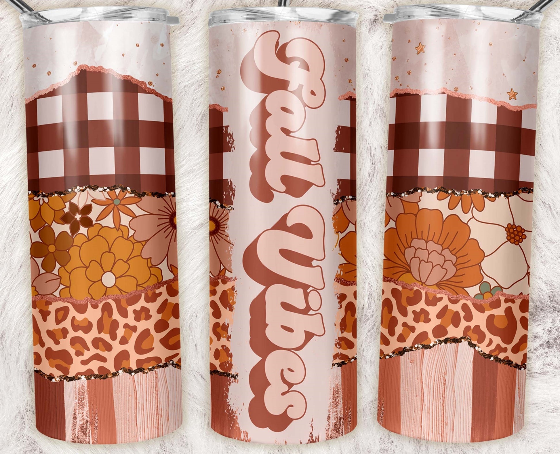 Retro Fall Vibes Tumbler – Floral, Plaid & Leopard Autumn Drinkware