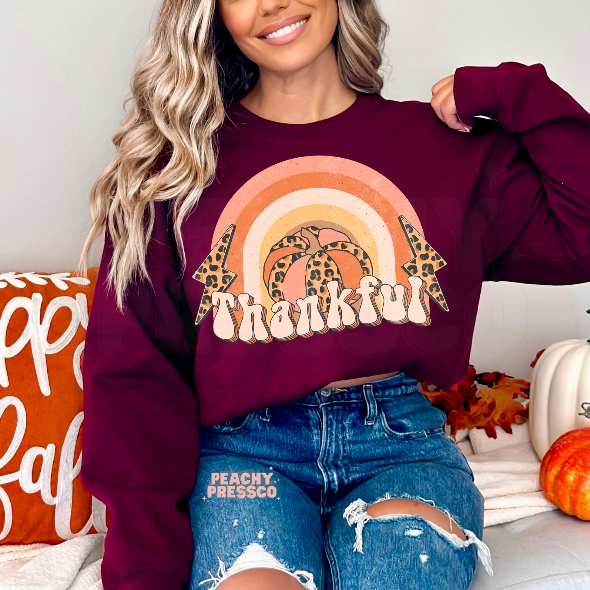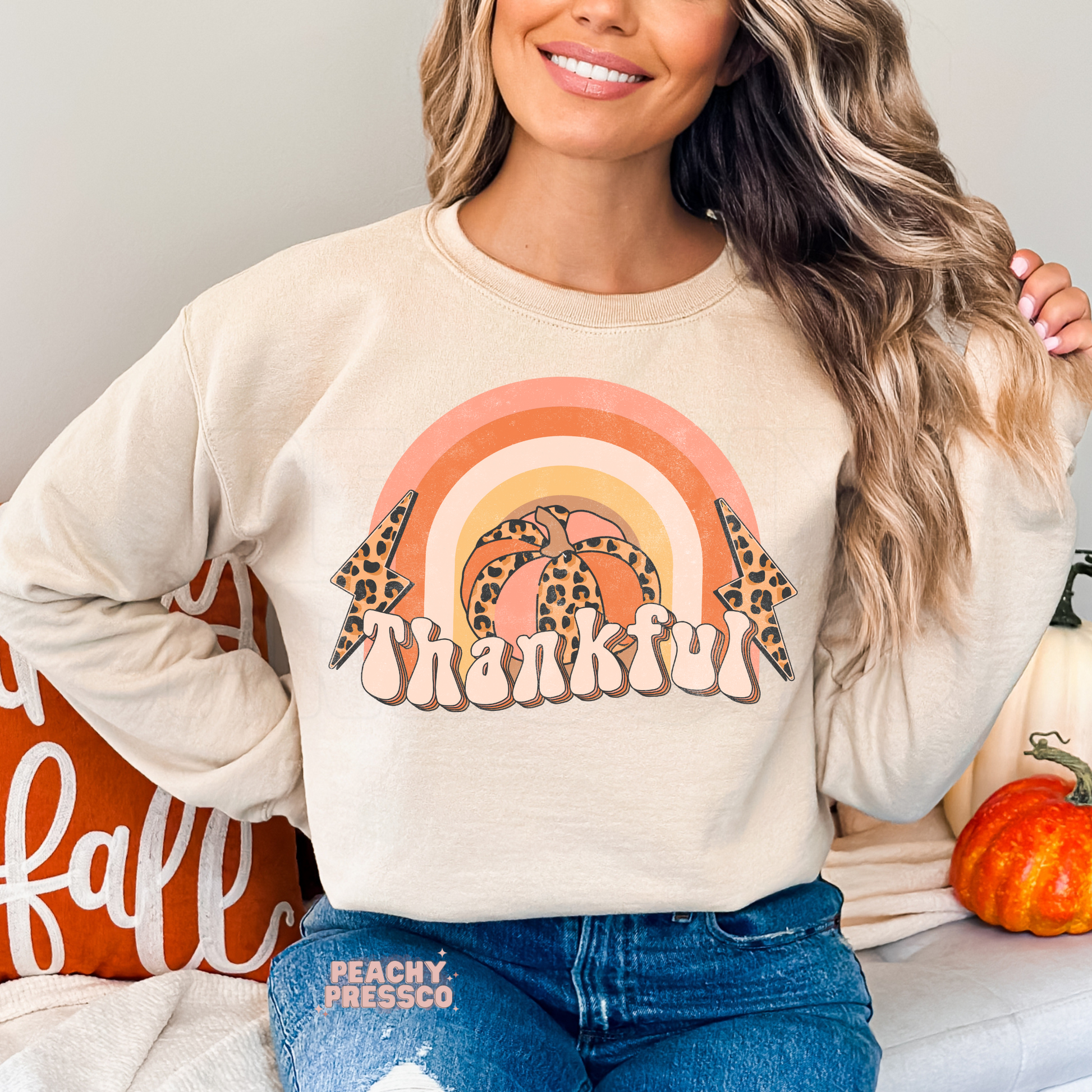 Retro Thankful Rainbow Pumpkin Sweatshirt – Fall Cozy Vibes Apparel
