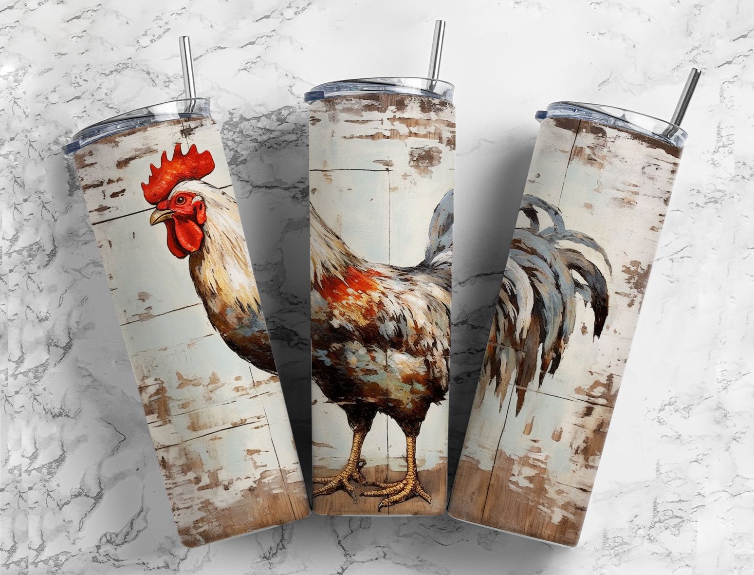 Rustic Rooster Tumbler – Farmhouse Chicken Cup, Vintage Wood Look