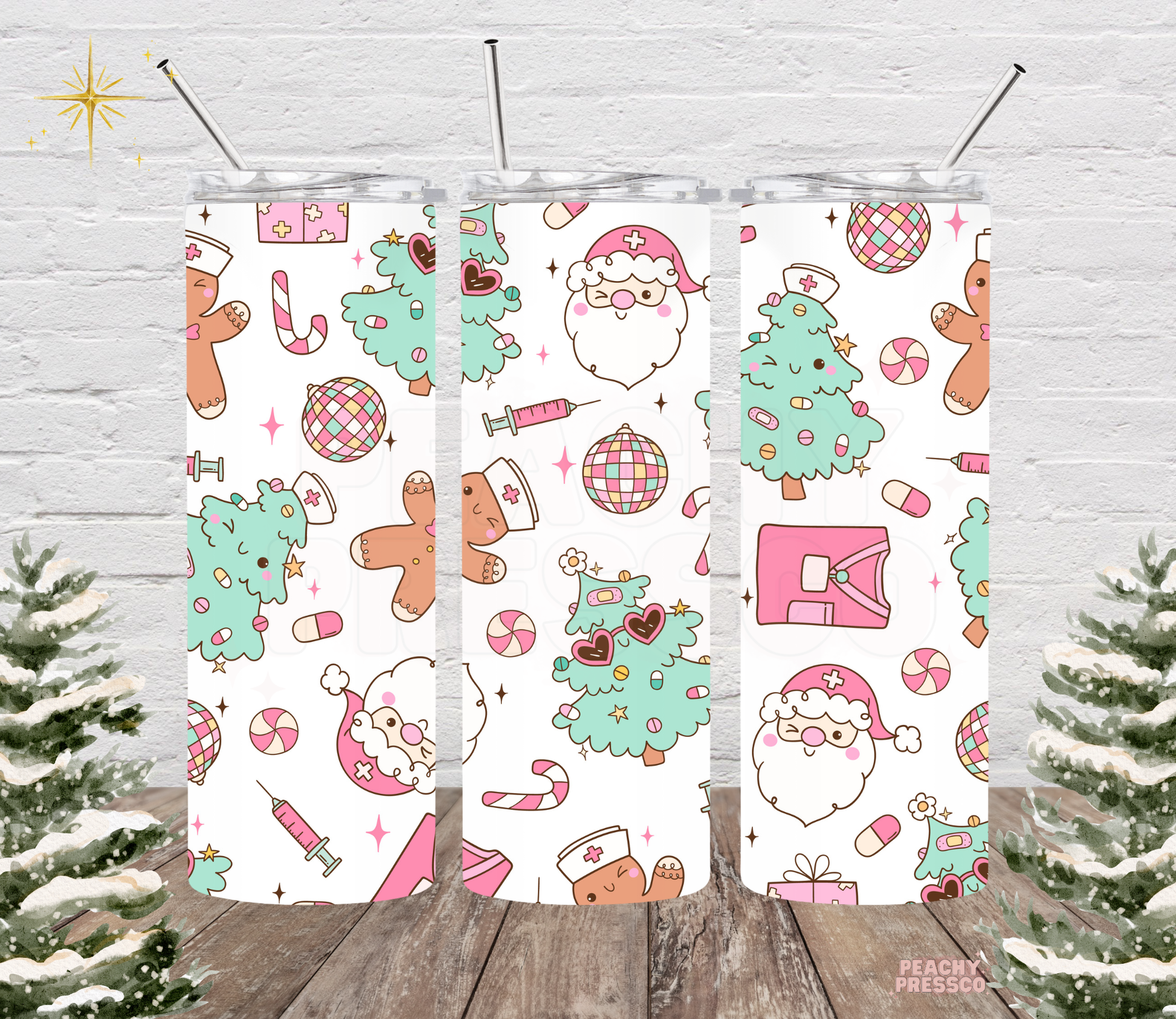 Santa Nurse Christmas Tumbler – Holiday Cup with Gingerbread & Festive Cheer 20oz Stainless Steel