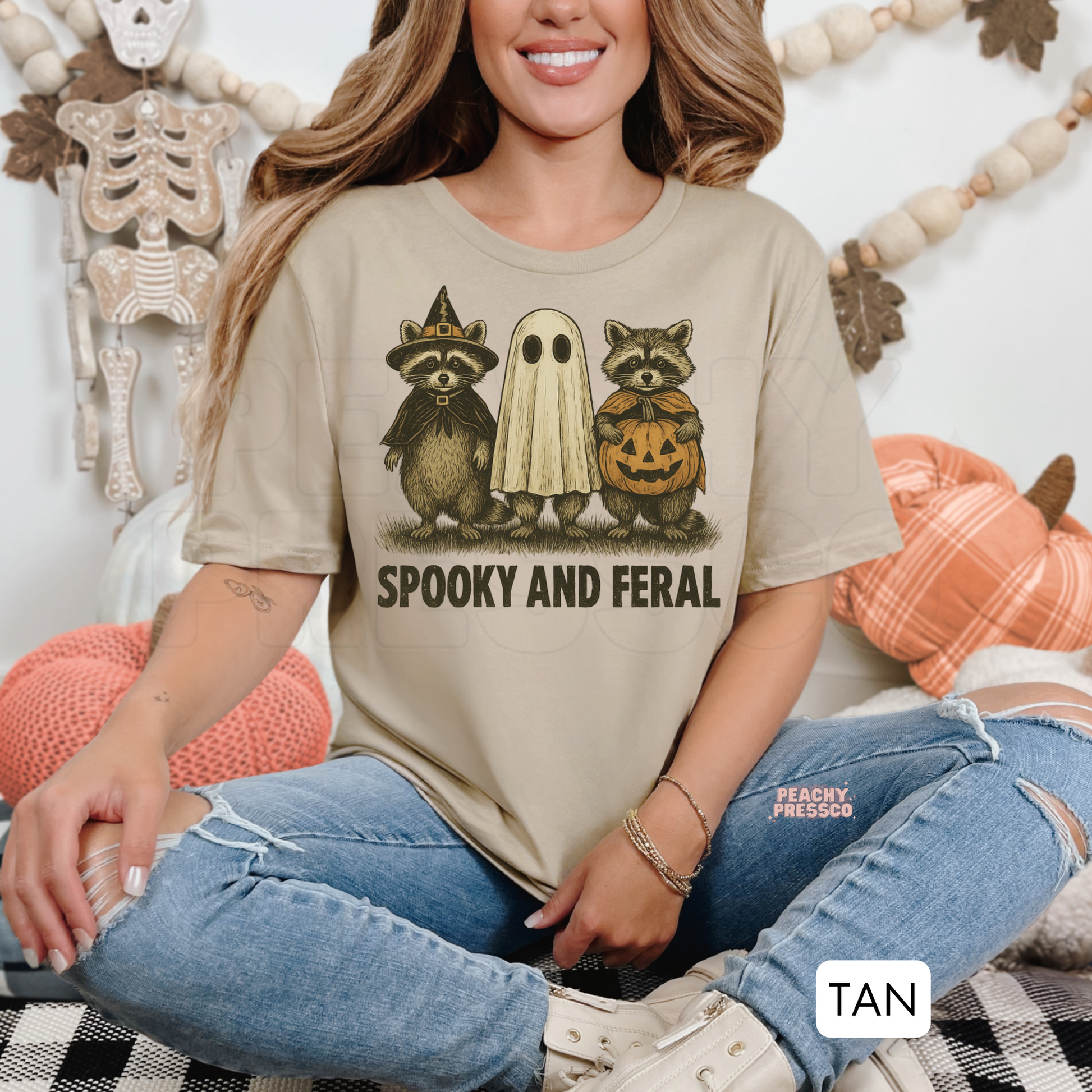 Spooky and Feral Raccoon Halloween Shirt | Cute Retro Graphic Tee, Apparel