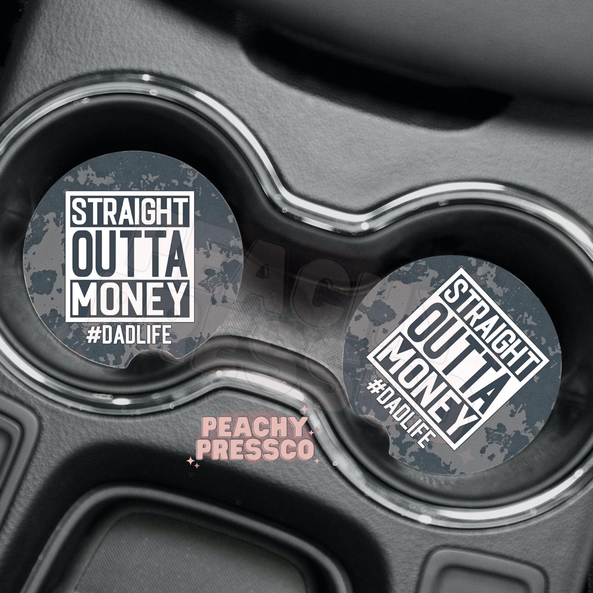 Straight Outta Money Car Coasters – Funny Dad Life Set