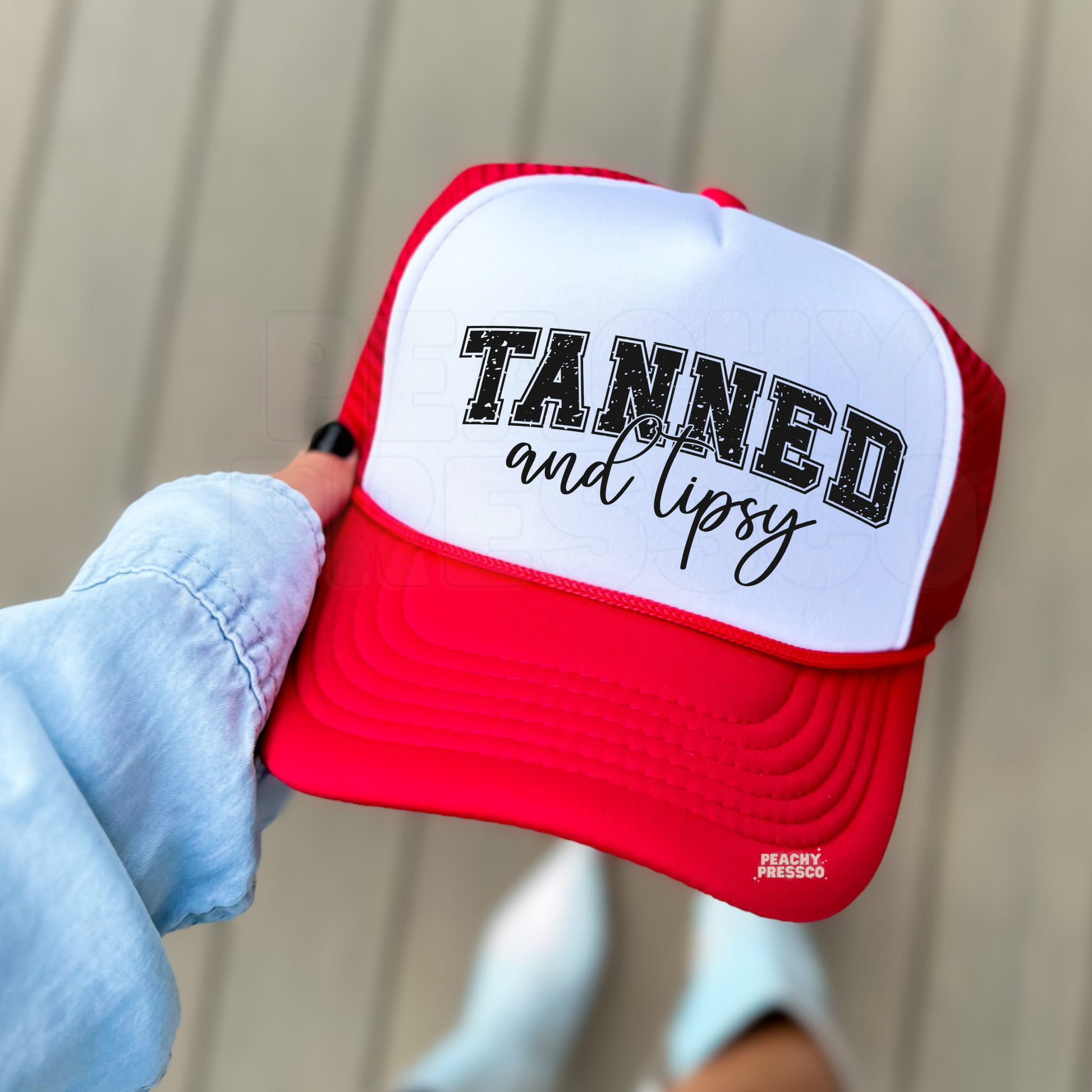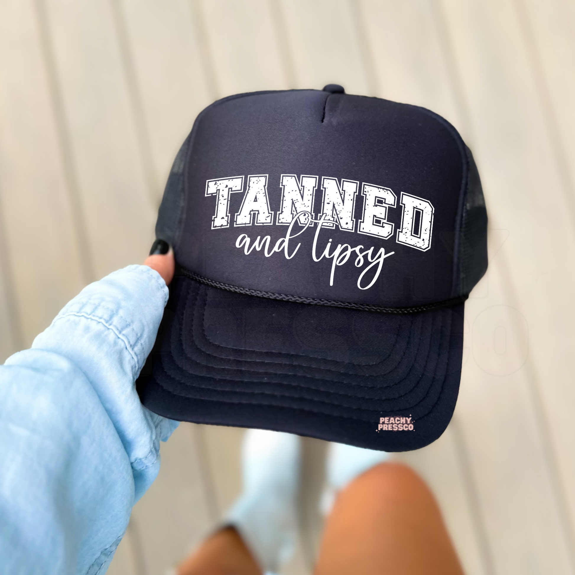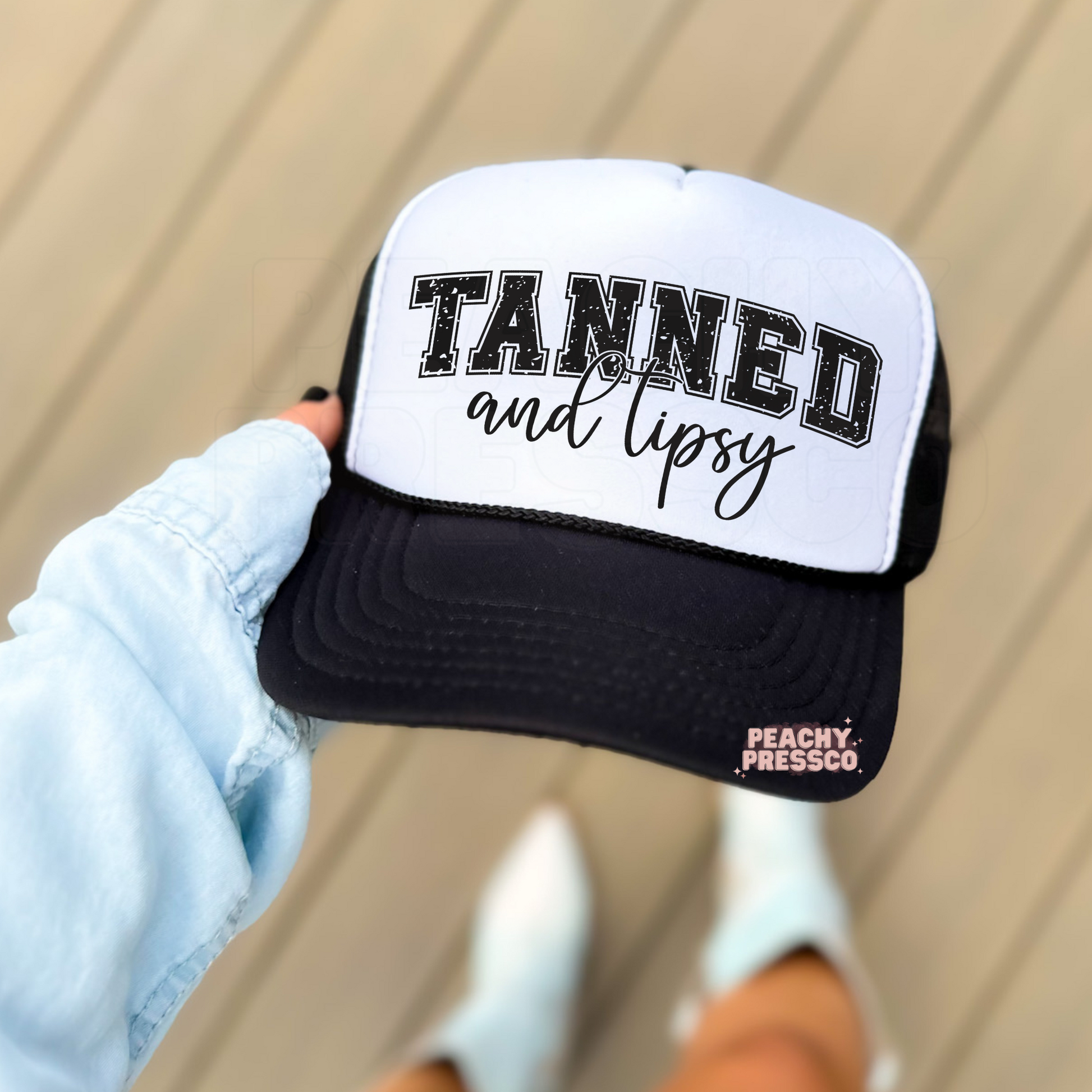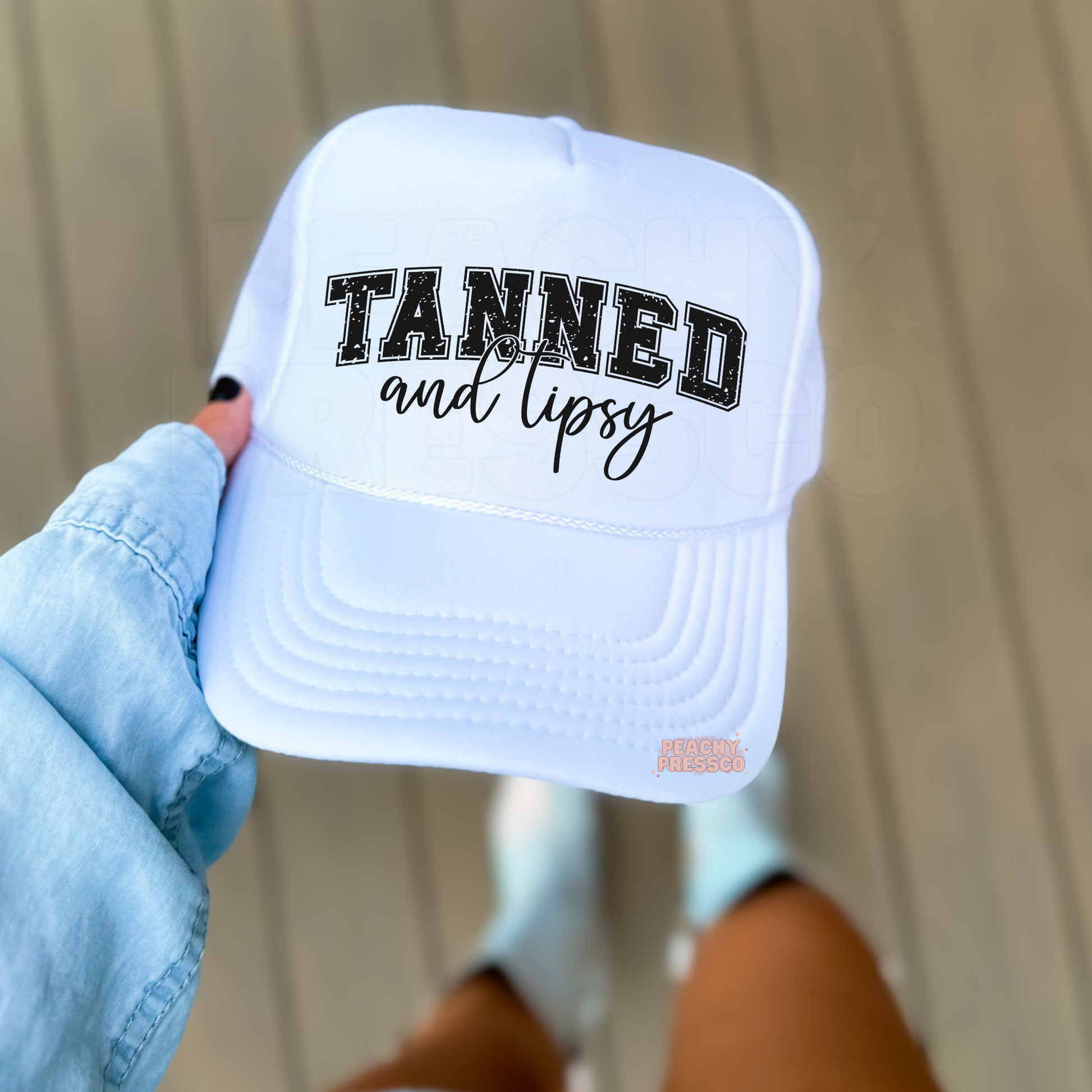 Bring the summer vibes wherever you go with our Tanned and Tipsy trucker hat — fun, flirty, and perfect for beach days or brunch with the girls!