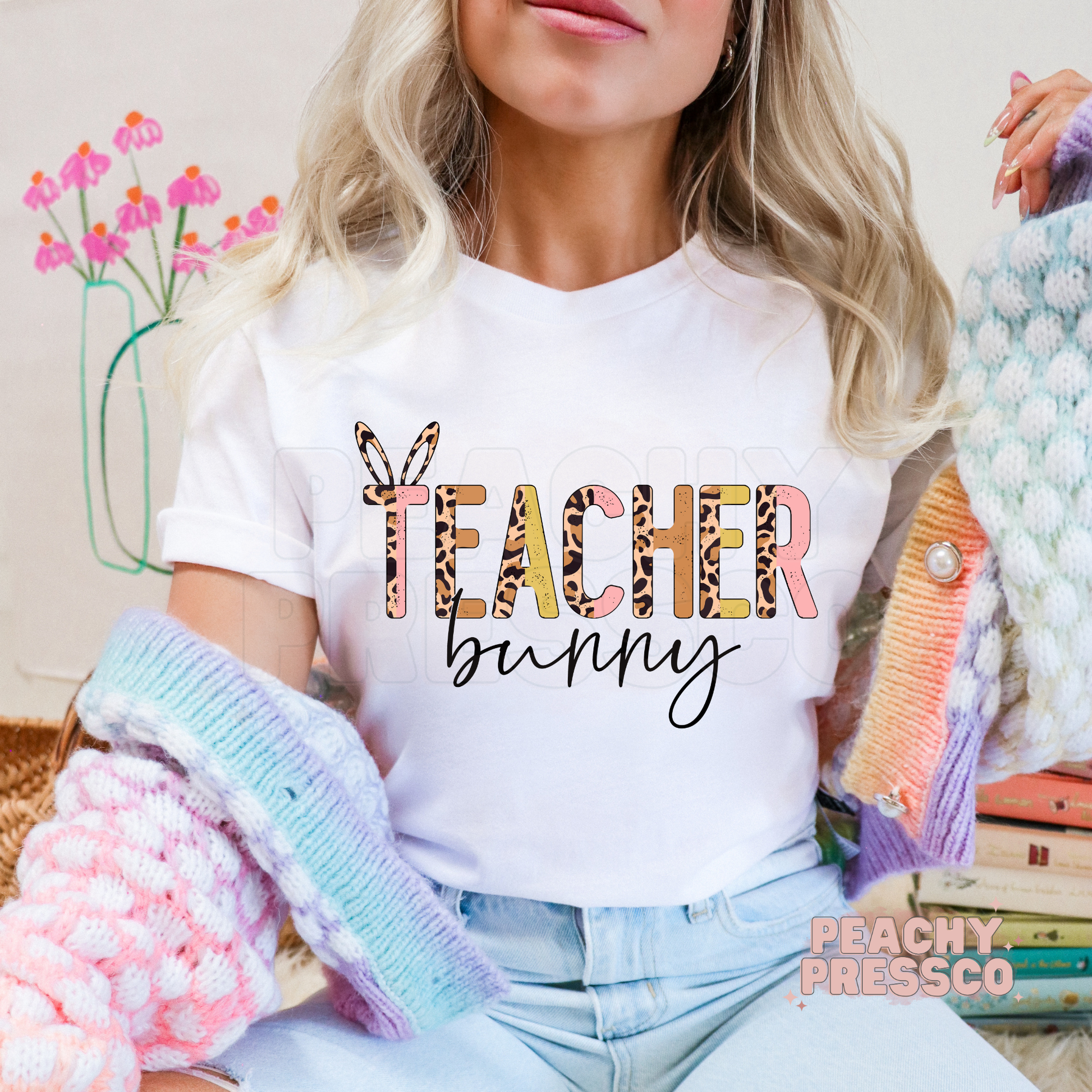 Teacher Bunny T-Shirt – Easter Apparel with Leopard Bunny Ears for Teachers