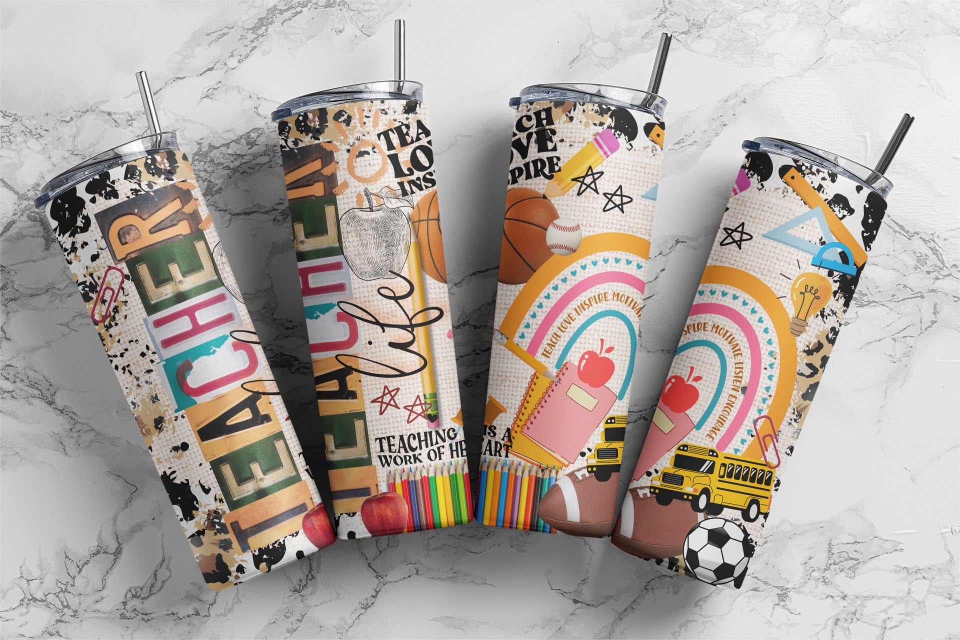 Teacher Life Tumbler – 20oz Colorful Rainbow School Theme Cup