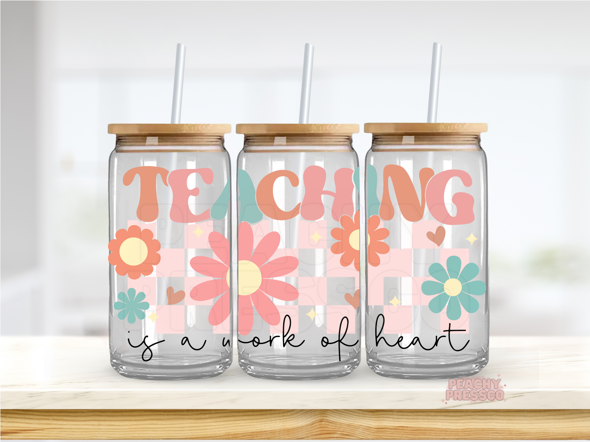 Teaching Is a Work of Heart Glass Cup – 16oz Teacher Appreciation Cup