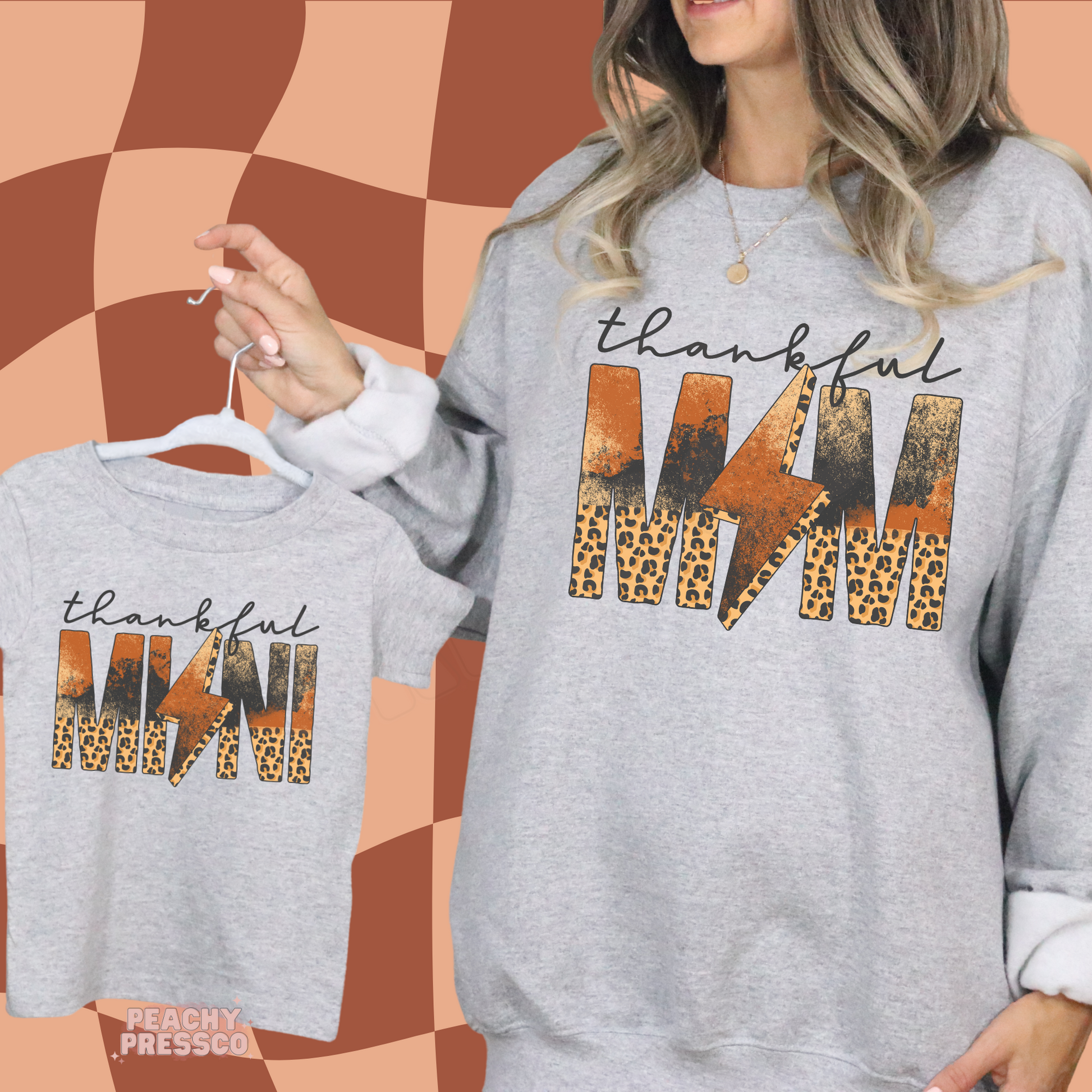 Thankful Mom & Mini Leopard Bolt, Western Matching Fall Apparel