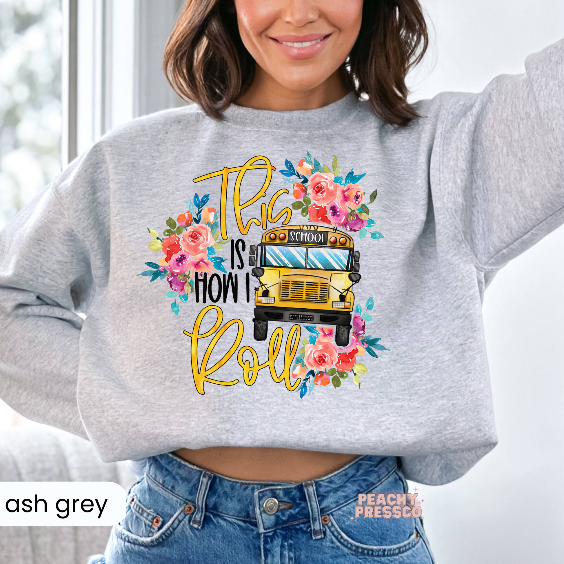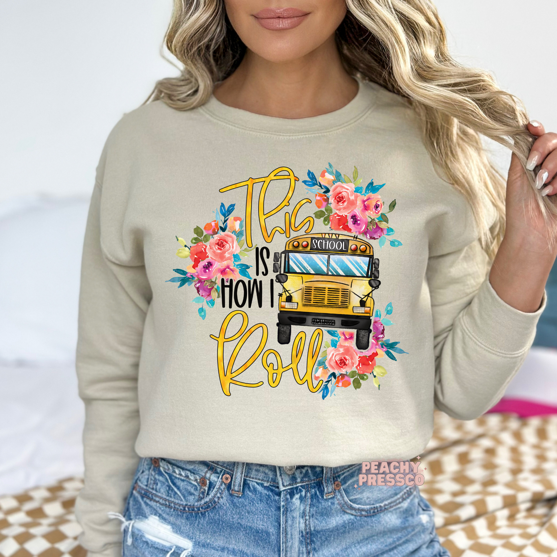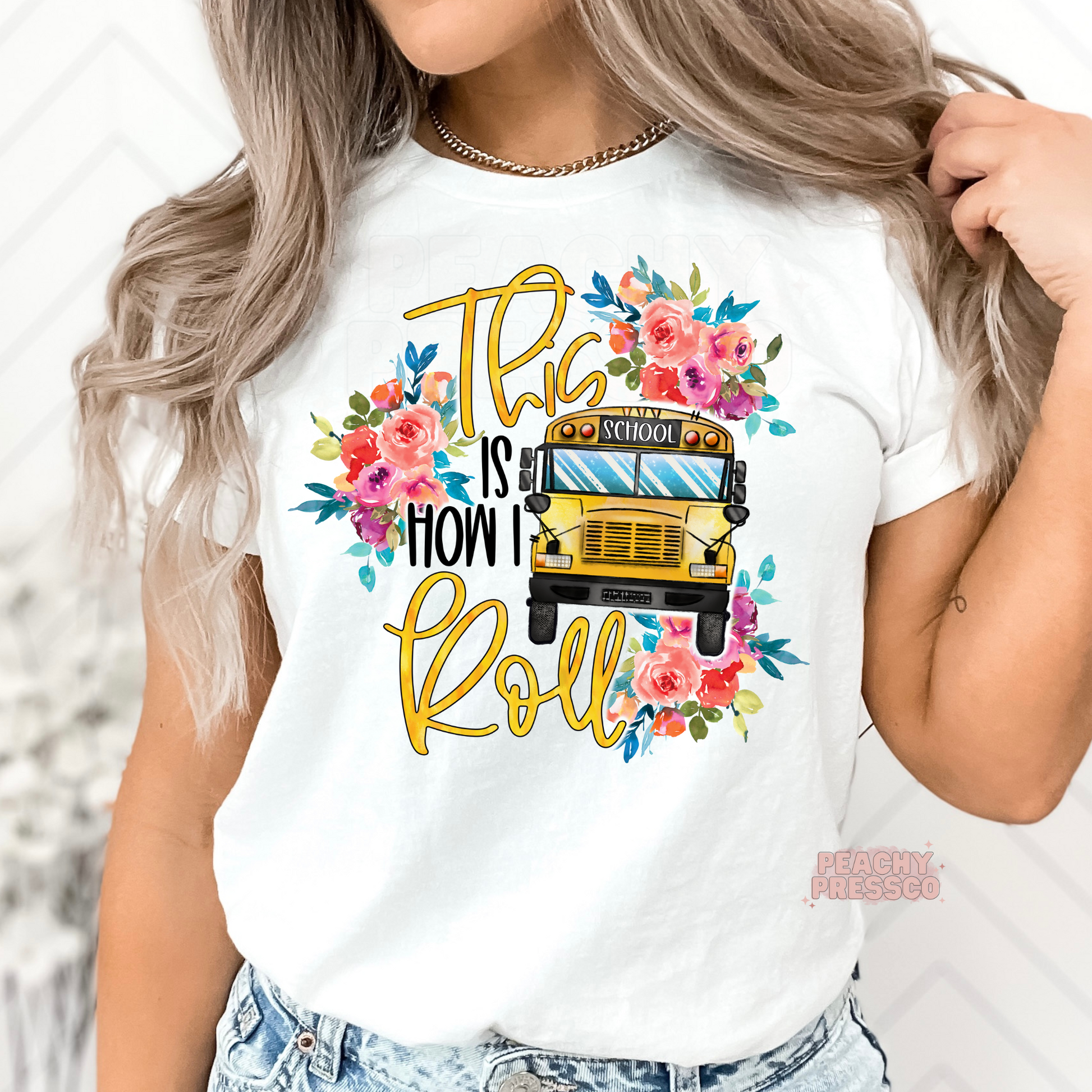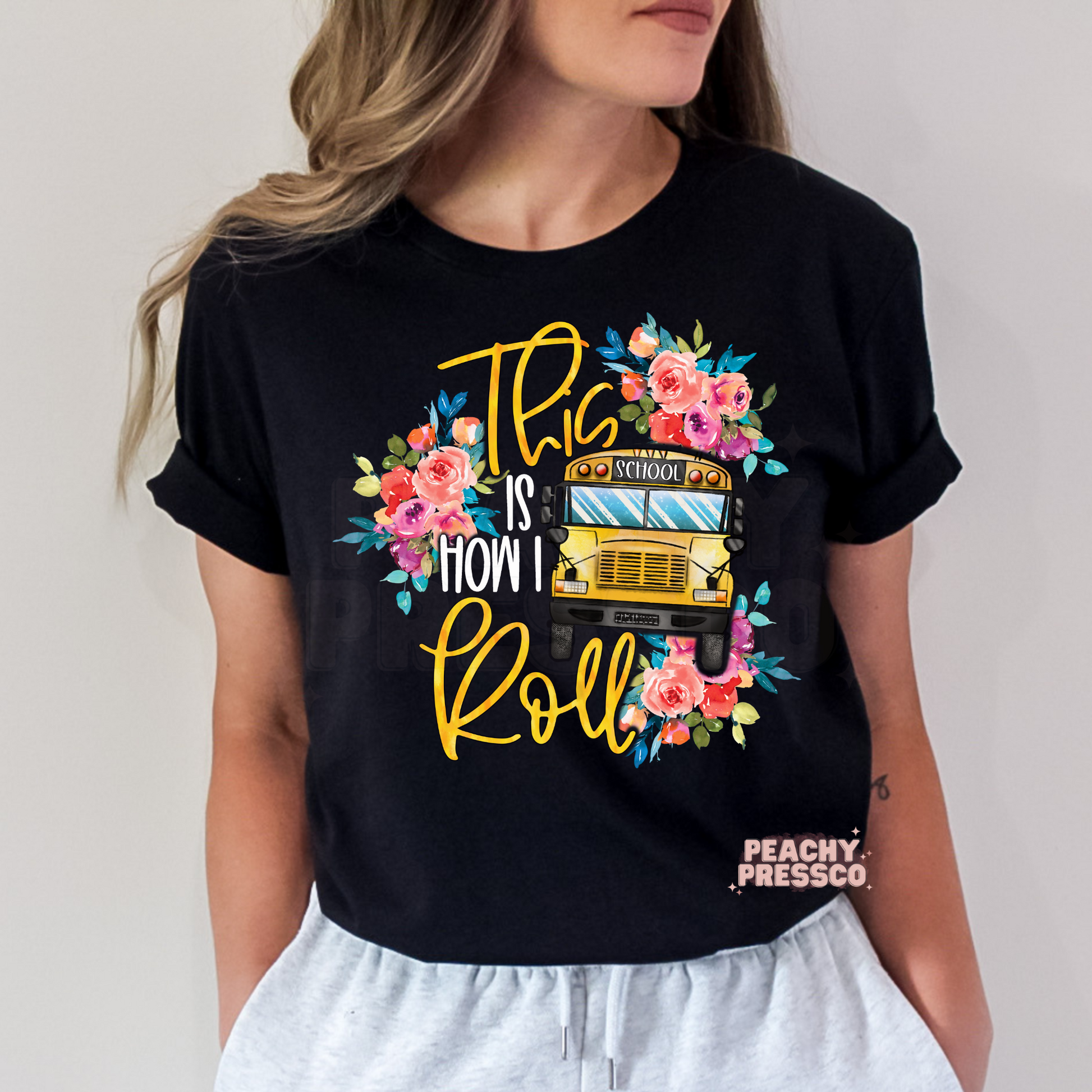 This Is How I Roll Funny School Bus Driver T-Shirt with Floral Design Apparel