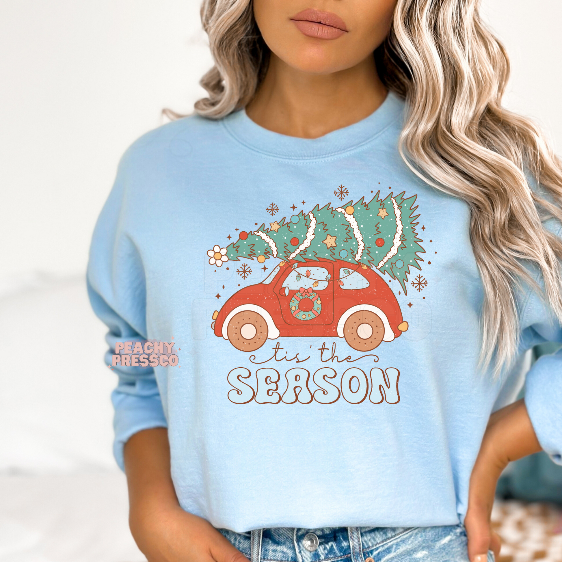 ‘Tis the Season Car Christmas Tree Sweatshirt – Retro Holiday Crewneck