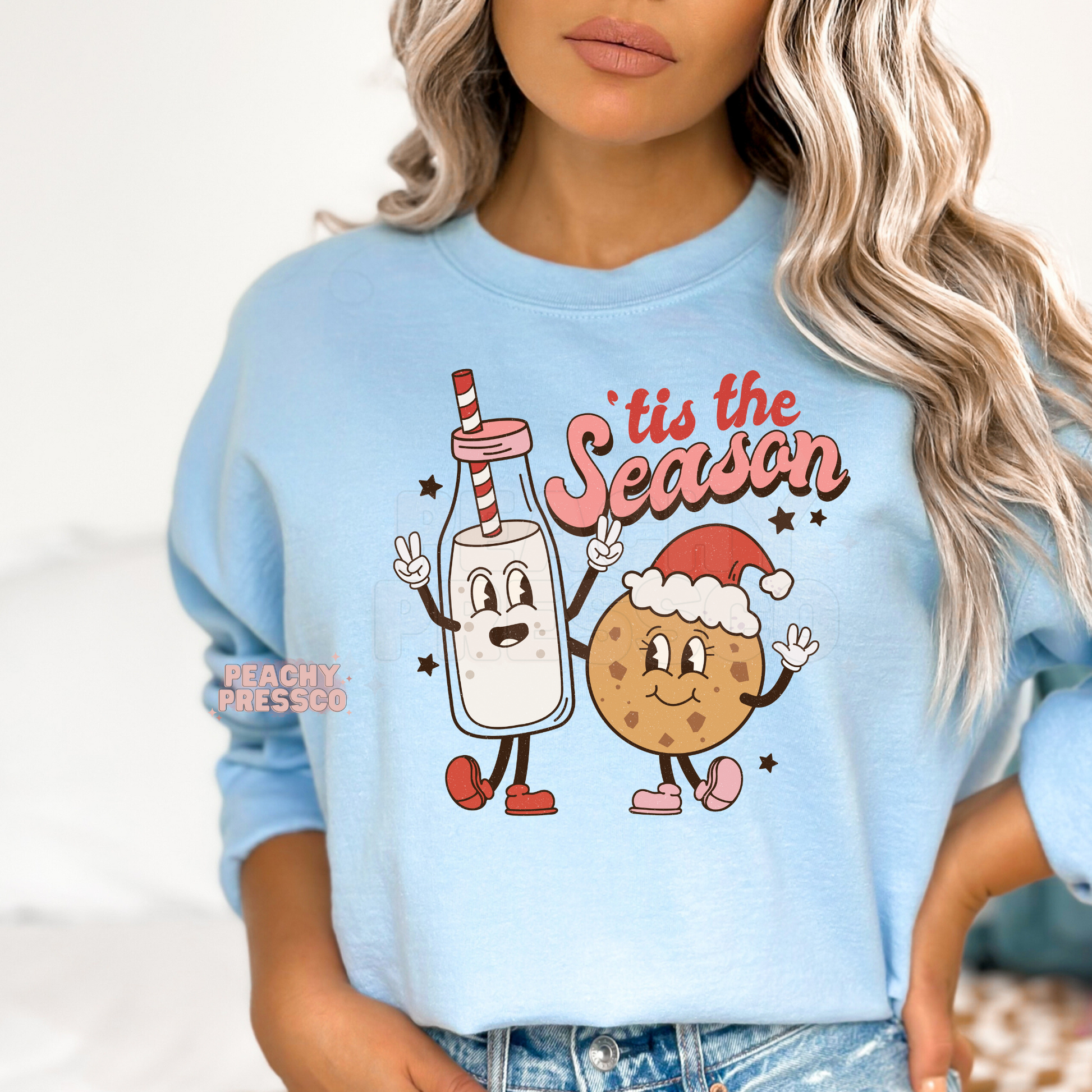 ‘Tis the Season Milk and Cookie Christmas Tee – Cute Holiday Cartoon Apparel