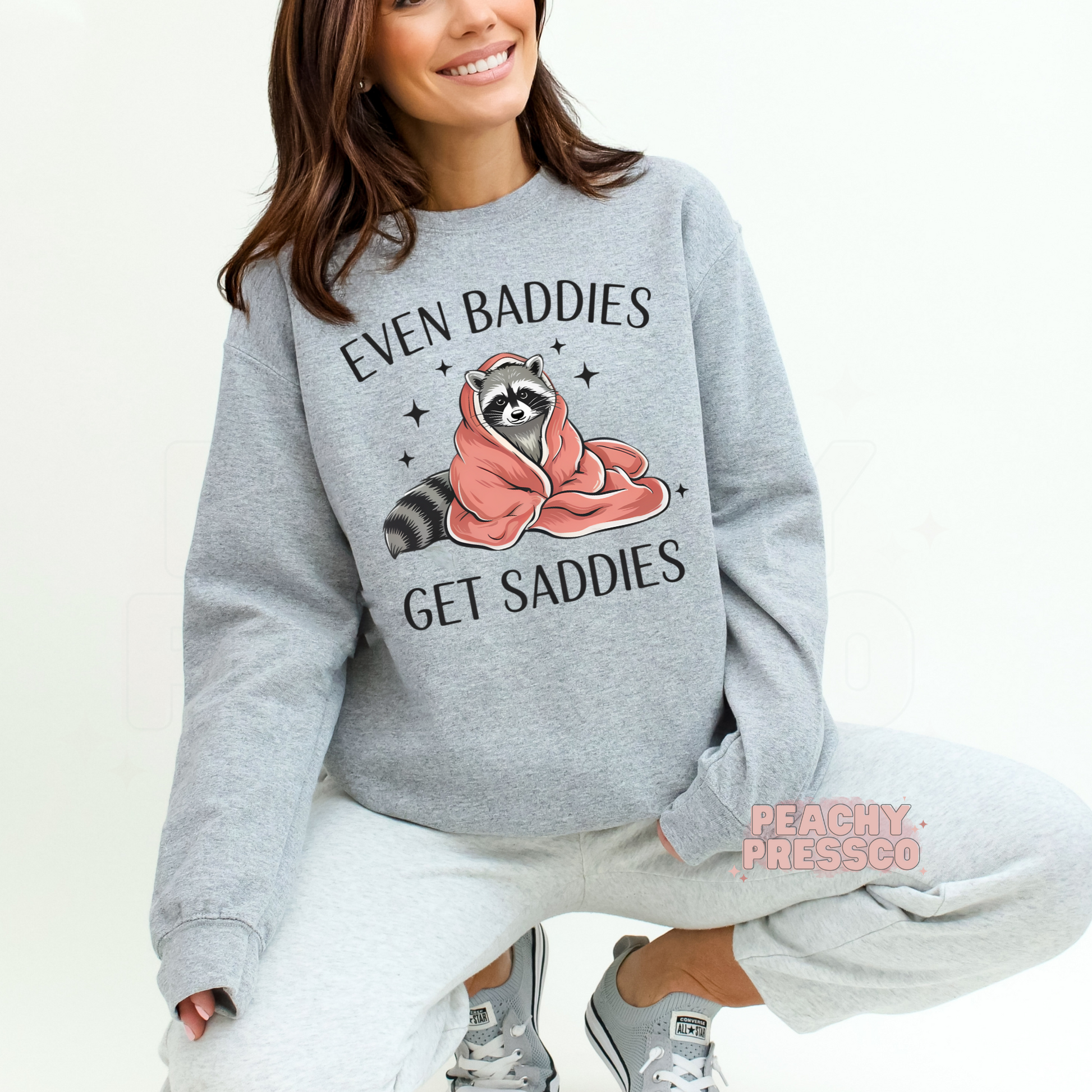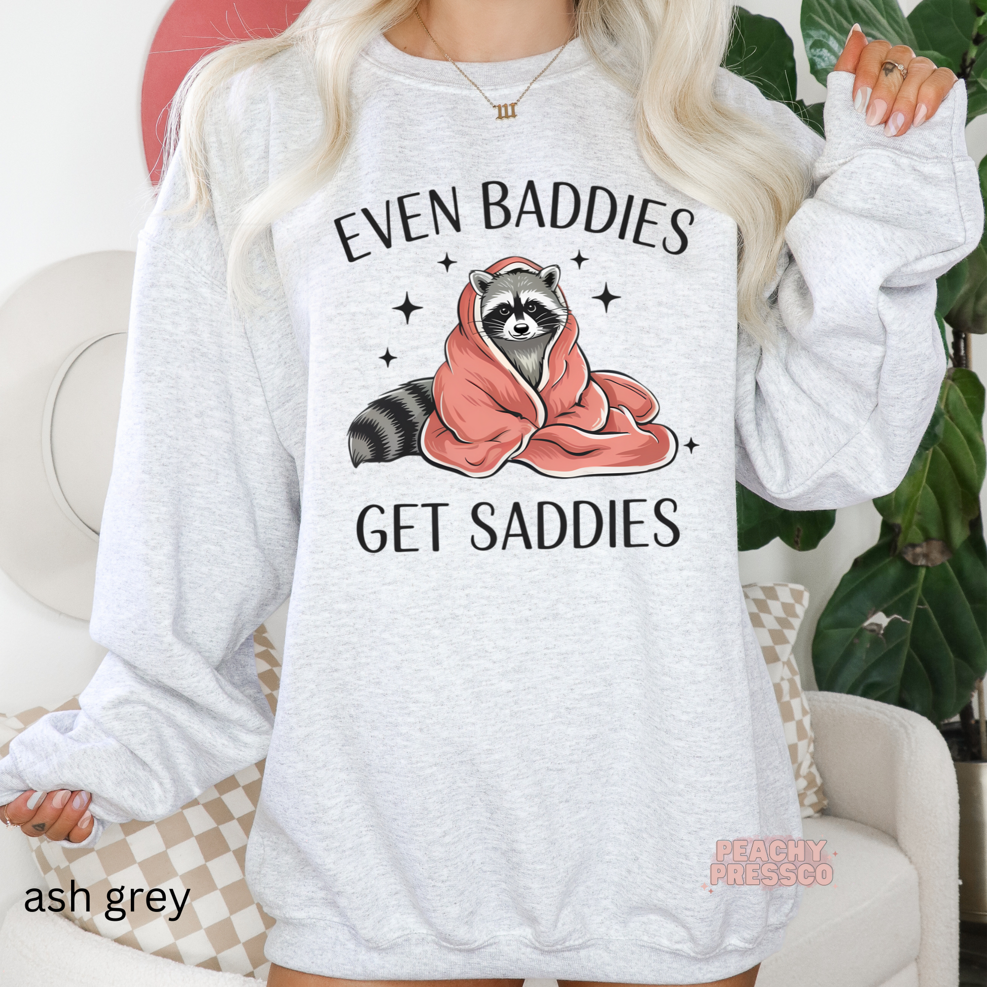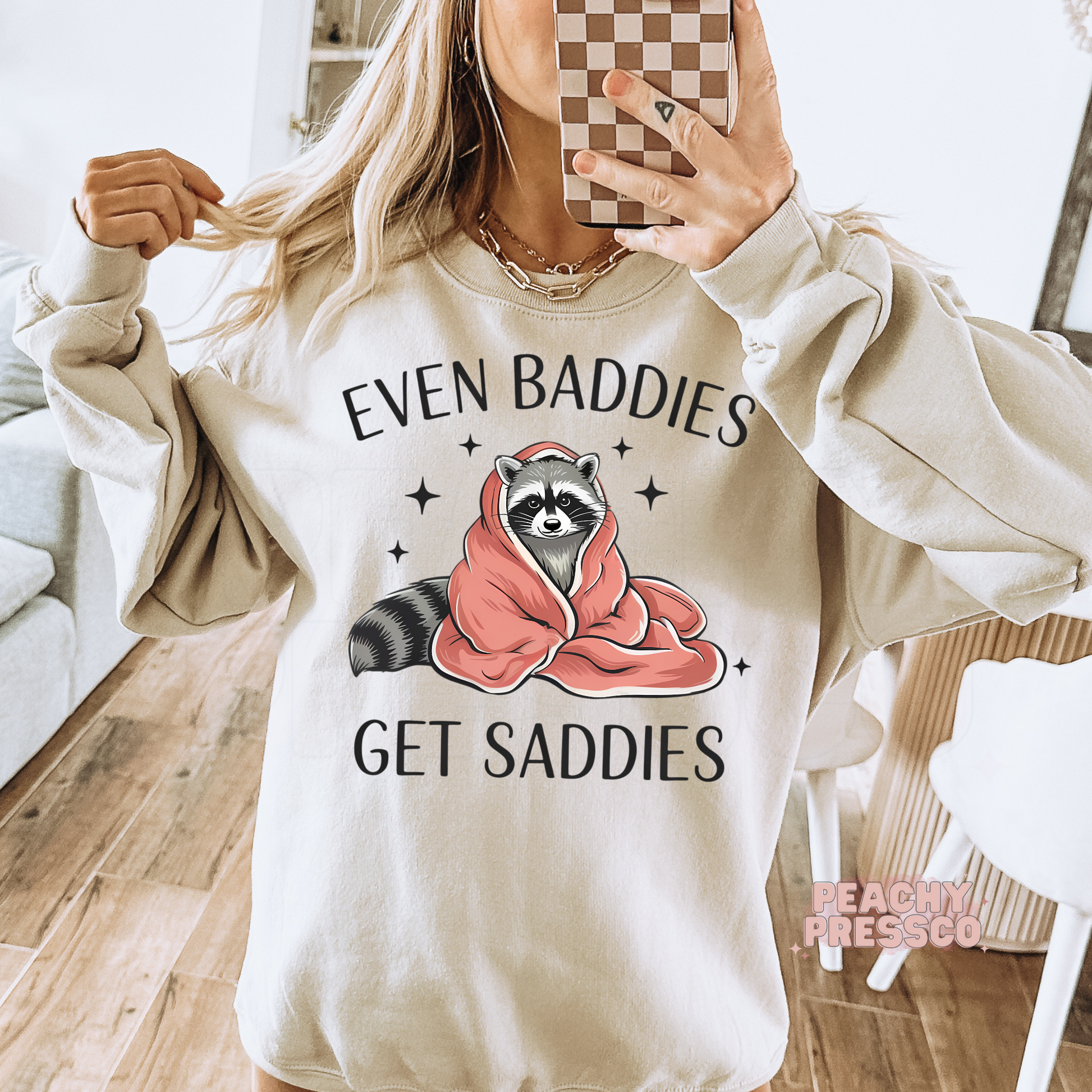 Trendy Even Baddies Get Saddies Graphic Tee – Cozy Mental Health Awareness Crewneck, Apaprel