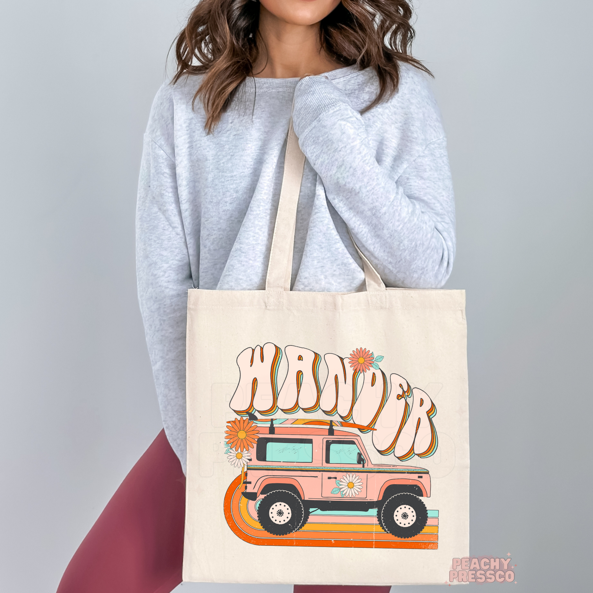 Wander Tote Bag – Retro Floral Adventure Canvas Tote