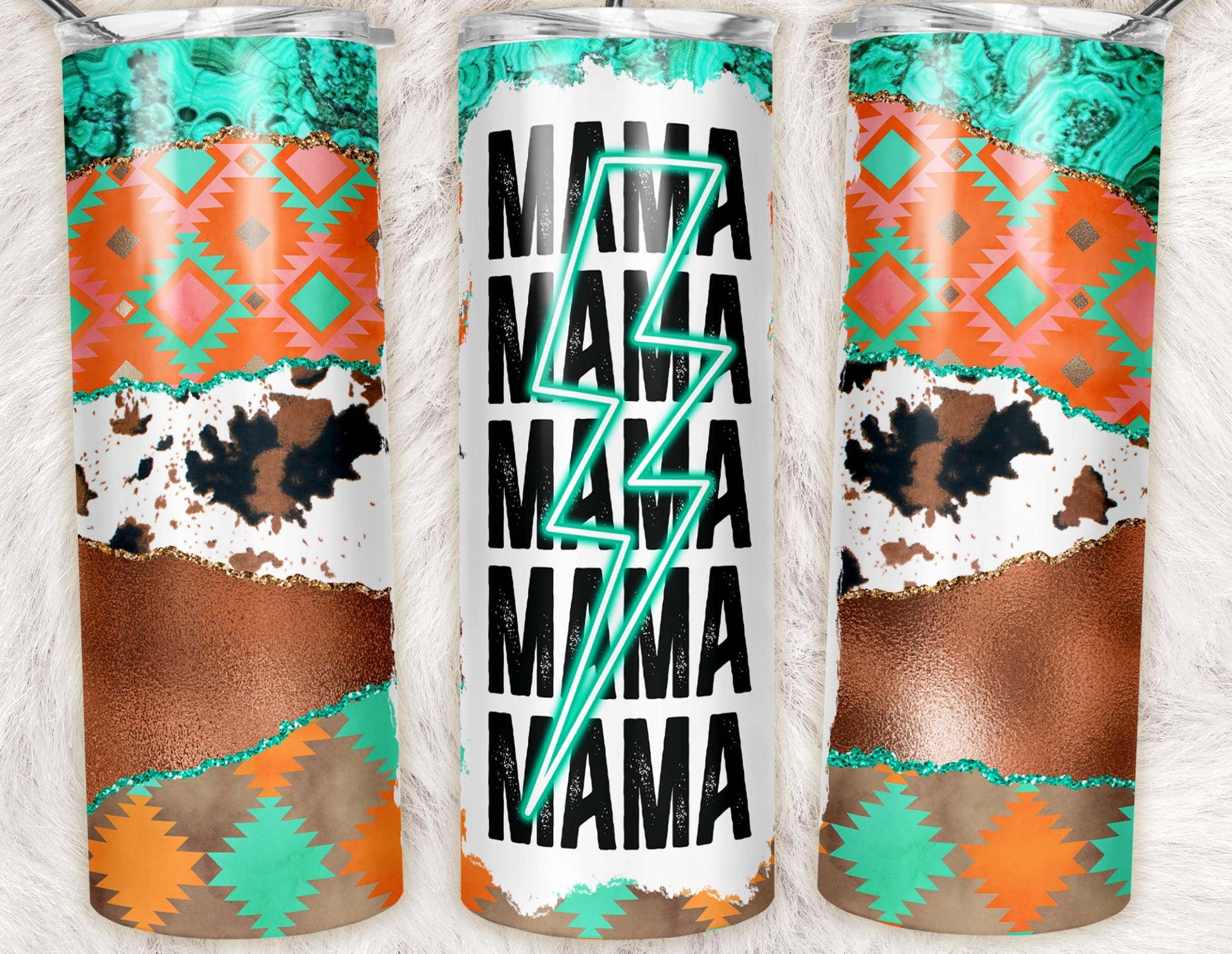Western Mama Tumbler – Cowhide, Turquoise & Aztec Design
